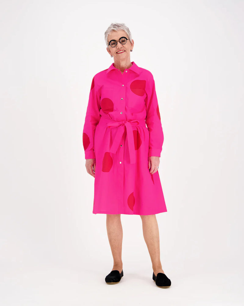 Monikäyttöinen A-linjainen takkimekko. Takkimekossa on kaksi rintataskua ja taskut lantiolla sivusaumoissa sekä nepparit edessä ja hihansuissa. Mekon mukana tulee vyö.