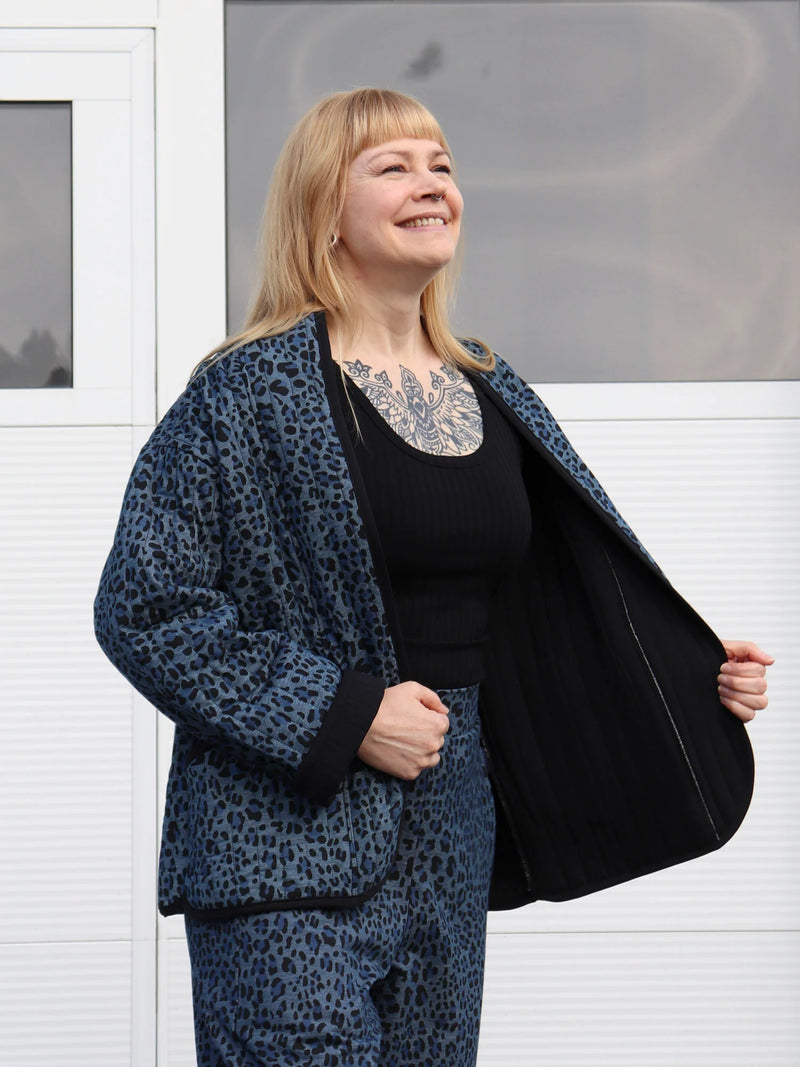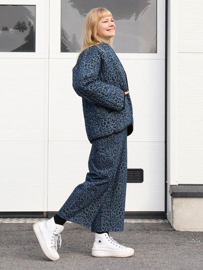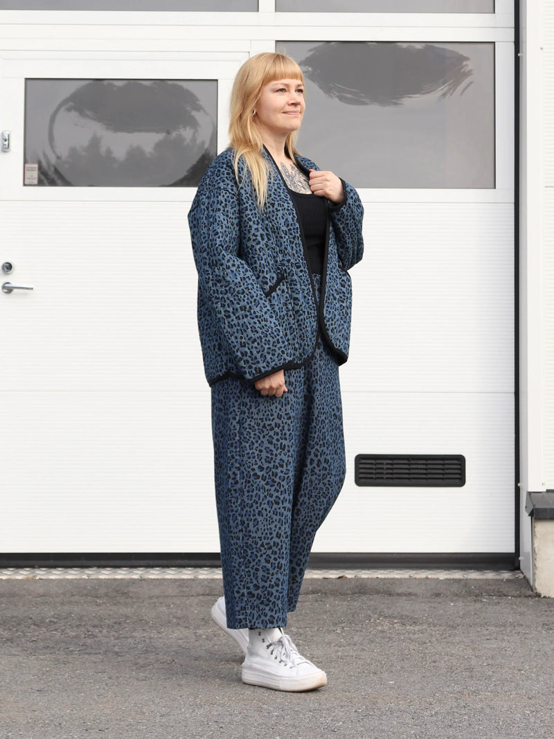 Monikäyttöinen tikkijakku näyttävässä leopardikuosissa! Kerry takki toimii niin sisäjakkuna kuin ulkotakkina, sekä mekon että vaikkapa farkkujen kanssa. Takkia koristaa pystyraidallinen tikkaus. Edessä viistot taskut. Takin pintamateriaali on jämäkkää mutta joustavaa, denim-tyylistä trikooneulosta.
