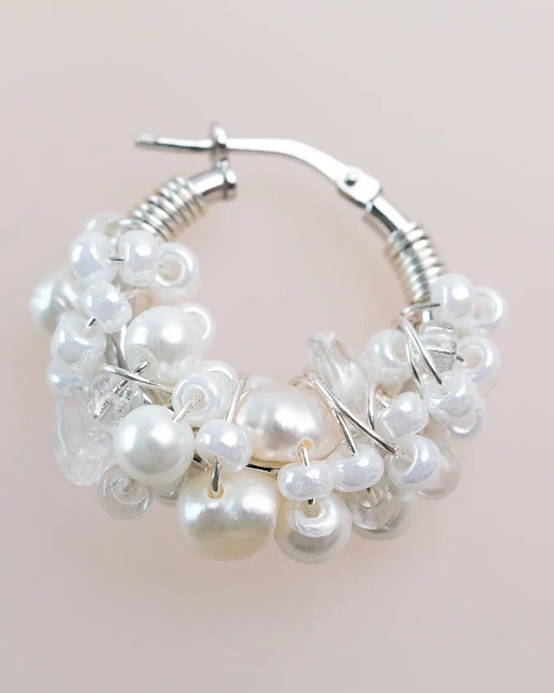 Helmillä koristellut näyttävät hopeakorvakorut! Koruihin on käytetty useita erilaisia helmiä tuomaan mielenkiintoa ja yksilöllisyyttä, mm. vuorikristallia sekä aitoja makeanvedenhelmiä. Jokainen korvakoru on ainutlaatuinen yksilö, sillä helmet on pujoteltu kiinni käsin yksitellen. Korujen metalliosat ovat laadukasta 925 sterling-hopeaa rhodium-pinnoitteella, joka estää hopeaa tummumasta. Korut toimitetaan kauniissa, vaaleanpunaisessa korurasiassa.