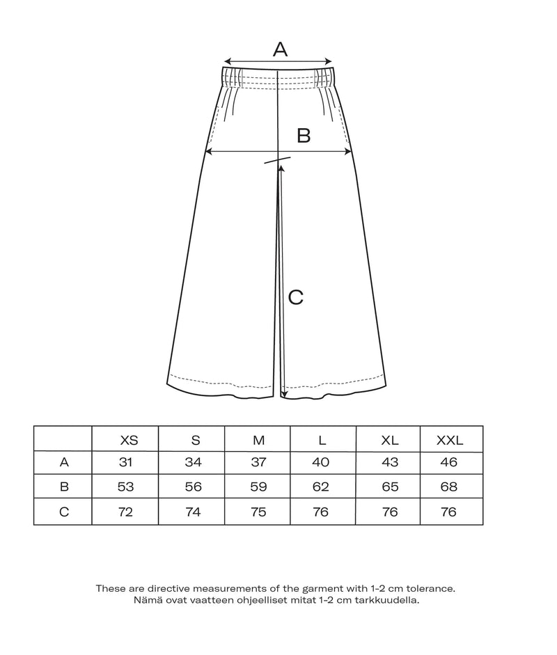 Ensimmäinen malli on 174 cm pitkä ja käyttää kokoa M. Toinen ja kolmas malli ovat 168 cm pitkiä ja käyttävät kokoa M. Neljäs malli ovat 178 cm pitkä ja käyttää kokoa XL.