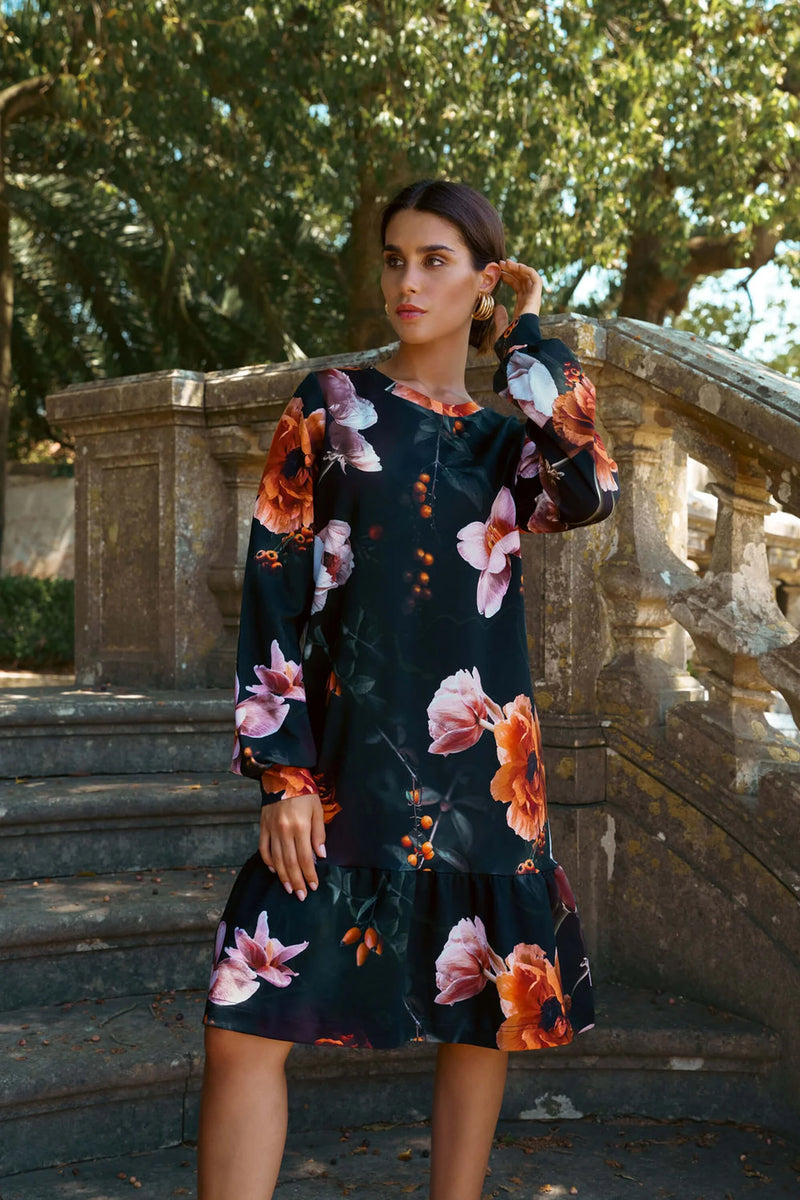 Mekon Copper Flower-kuosi hurmaa näyttävällä kukkaprintillään. Elegantti ja rohkea kuosi tekee tästä mekosta upean katseenvangitsijan. Jokainen mekko on yksilöllinen, sillä kuosin kohdistus vaihtelee kappaleittain.