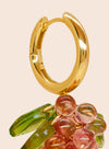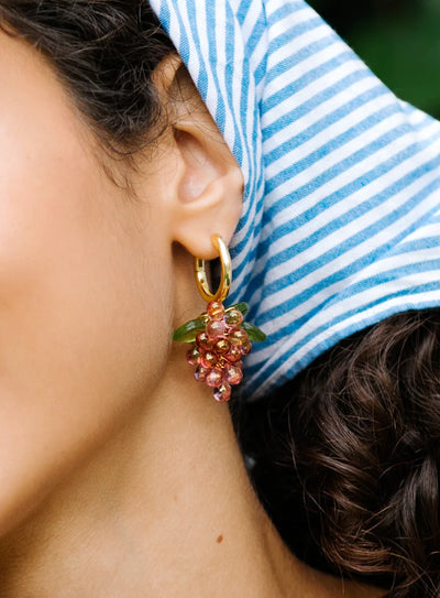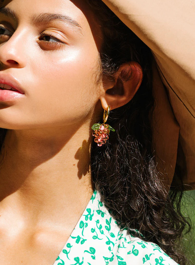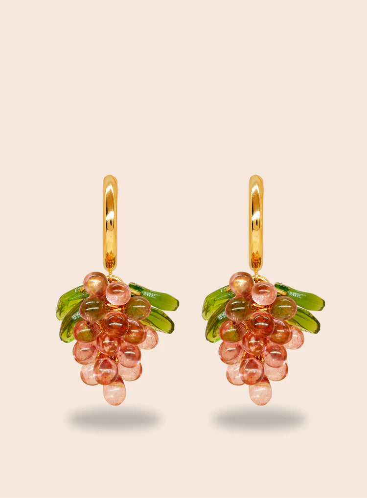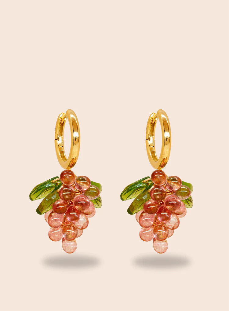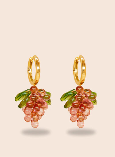 Go pink or go home. Raspberry Jelly -korvakoruissa on 18k kullalla päällystetyt 925 sterling-hopearenkaat, lasihelmiä ja akryylilehdet.