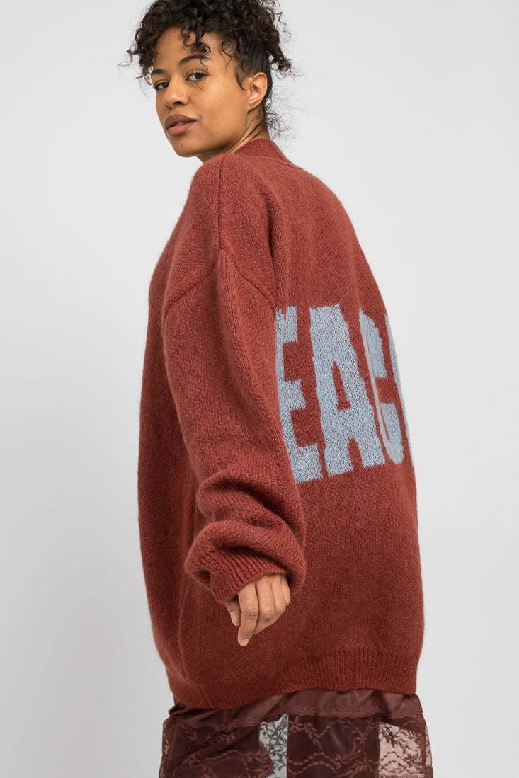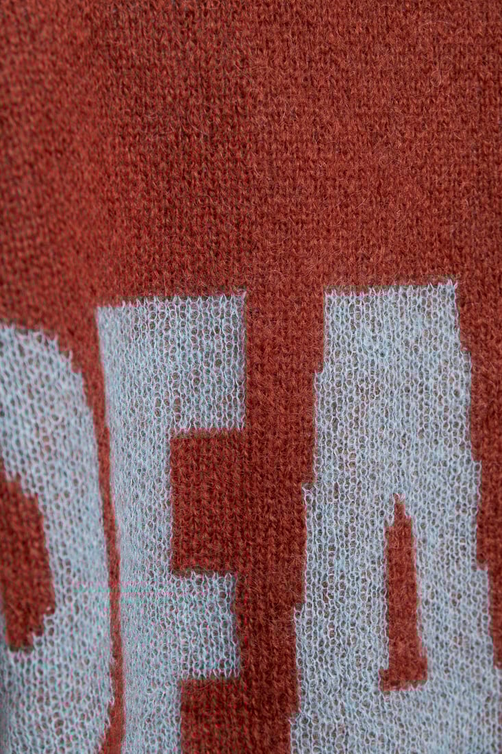 Tämä mohairsekoiteneule on suunniteltu ja valmistettu rakkaudella Suomessa. Neuleen selässä on kudottuna suuri Peace-teksti, jonka on suunnitellut Maija Louekari.