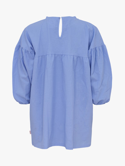 Savannah tunika on mukavan rento valinta housujen ja leggingsien kaveriksi! Tunikan materiaali on ihanan kevyttä seersucker -puuvillakreppiä. Kangas ei juurikaan jousta. Tunikassa on myös taskut. Kauniit, puhvimaiset hihat, hihansuissa ohut kuminauha. Niskassa nappikiinnitys. Tunikan yläosassa yksityiskohtana poikkisauma, jossa rypytys.